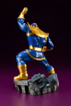 Portrayed in a bold blue and gold costume inspired by the classic comics, this easy-to-assemble snap-fit piece looks great straight out of the box, and the Kotobukiya Thanos statue features dynamic sculpting and a paint job that exudes a powerful energy which will reign supreme over your collection! Add this Thanos collectible figure to your supervillain collection today.